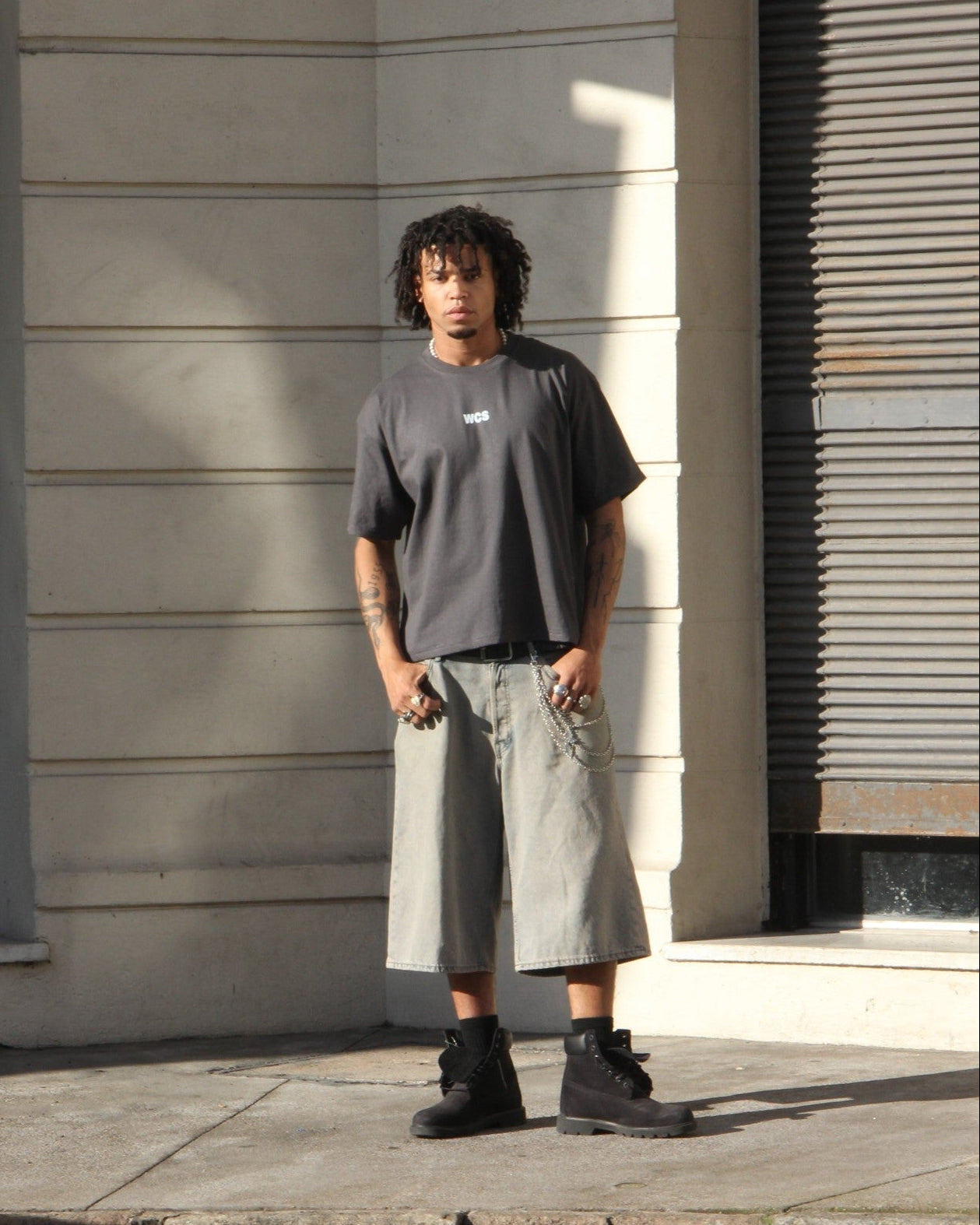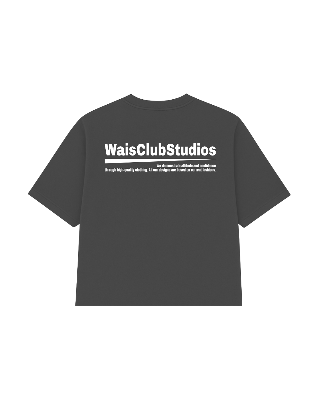 Remera color gris oscuro confeccionada en 100 % algodón. Presenta un corte loose fit, cuello redondo acanalado y mangas hasta los codos. Diseño en color blanco estampado en la parte superior de la espalda Y Logotipo del diseño con la sigla WCS (Wais Club Studios) en el centro del pecho.